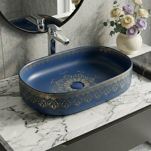 View full detailsDesigner Ceramic Wash Basin Gold Moroccan design | 21 x 14 x 6 In | Blue