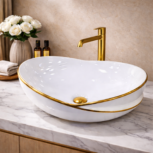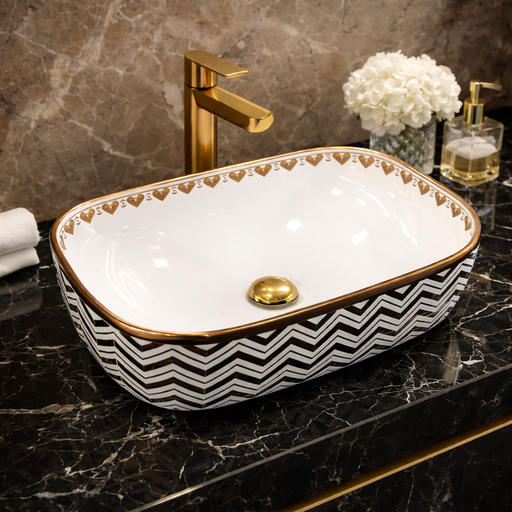 View full detailsBASSINO Chevron Heart Gilded Ceramic Vessel Sink (18 x 13 x 6 Inches)