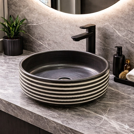 View full detailsBASSINO Zebra Artisan Circular Ceramic Vessel Sink (16 x 16 x 6 Inches)