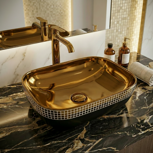 View full detailsLuxury Rectangular Basin | Gloss Ceramic Counter Top Basin | 18x13x5 inch | Gold