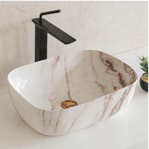 𝐇𝐢𝐠𝐡-𝐐𝐮𝐚𝐥𝐢𝐭𝐲 𝐂𝐞𝐫𝐚𝐦𝐢𝐜 𝐁𝐮𝐢𝐥𝐝: The BASSINO tabletop wash basin is crafted from premium ceramic material with a natural marble-effect finish that res...