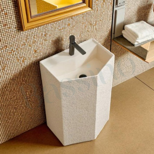 Product Description: Add a sculptural statement to your bathroom with this Sculpted Pedestal Basin, beautifully crafted from artificial marble. The...