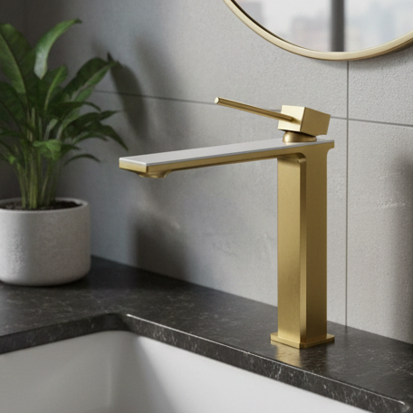 View full detailsPremium Brass Tall Basin Mixer Tap, Brushed Gold Finish, Tall Size (NCGF 505)