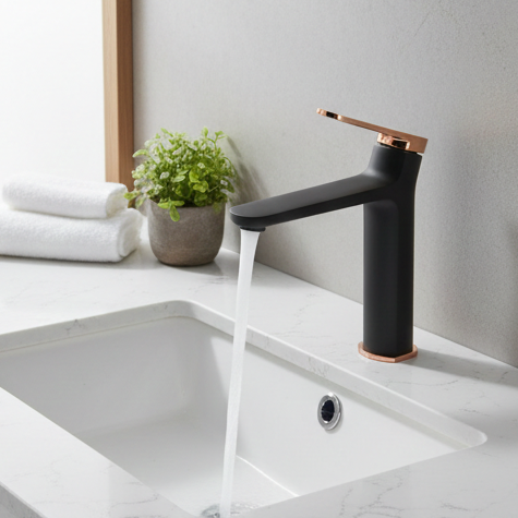 View full detailsPremium Brass Tall Basin Mixer Tap – Black Rose Gold Finish Tall Size (NCGF 501)