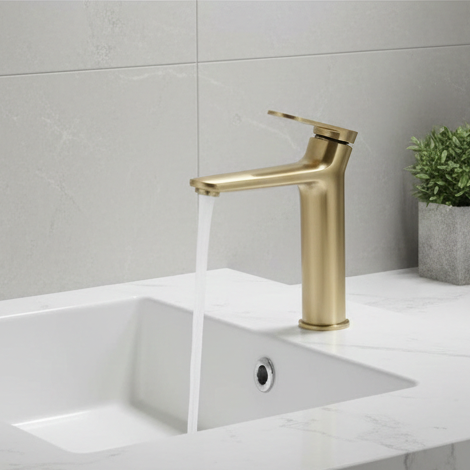 View full detailsPremium Brass Tall Basin Mixer Tap – Brushed Gold Finish Tall Size (NCGF 502)