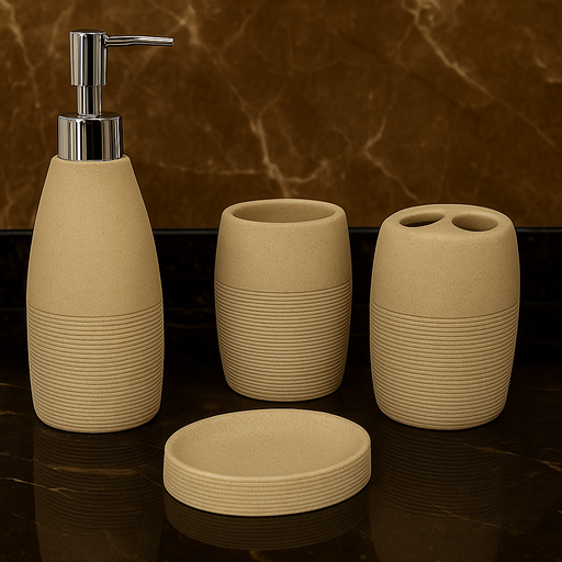 A premium Ivory Bathroom Accessory Set designed to add a soft, elegant, and modern look to any bathroom space. The textured stone-finish with smoot...