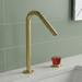 Designed in a premium Brushed Gold finish, this sophisticated deck-mounted faucet features a sleek, modern spout paired with a striking red crystal handwheel, creating a bold yet elegant statement for contemporary bathrooms.