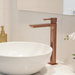 Its tall cylindrical body is perfectly proportioned for vessel and countertop basins, while the streamlined flat spout delivers smooth, controlled water flow with precision aeration. The solid single-lever handle offers effortless temperature and pressure control.