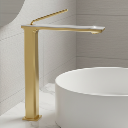 Premium Brass Tall Basin Mixer Tap, Brushed Gold Finish, Tall Size (NCGF 505) – 5 Years Warranty