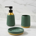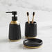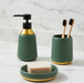 An elegant 3-piece ceramic bathroom accessory set designed to add a clean, luxurious touch to any modern bathroom. The matte ceramic finish paired with glossy gold detailing gives it a refined, contemporary look.
