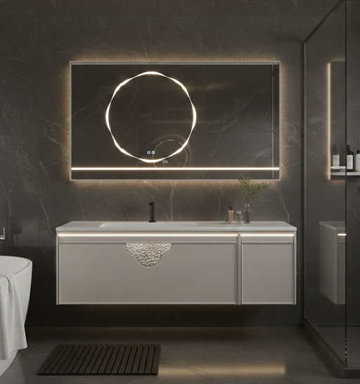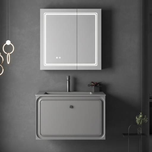 (Grey) features a minimalist wall-mounted design with smooth edges, intelligent lighting, and premium craftsmanship. The mirror cabinet and main ca...