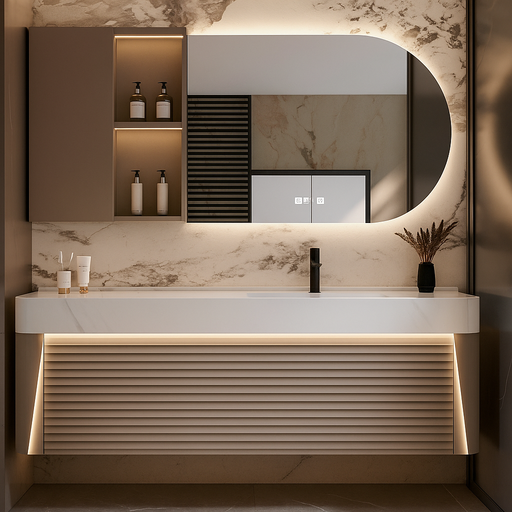 The NZBC-65 Bathroom Vanity Set blends modern elegance with smart functionality. The minimalist curved design, premium matte finish, and soft LED h...