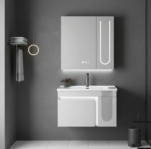 View full detailsPremium Bathroom Vanity Cabinet with Ceramic Basin & Sensor LED Mirror, 80cm