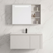 This complete set includes a spacious main cabinet, a premium ceramic basin, and a LED mirror cabinet with storage shelves, providing both functionality and a sleek contemporary look. The clean-lined design with subtle detailing makes it perfect for modern interiors.