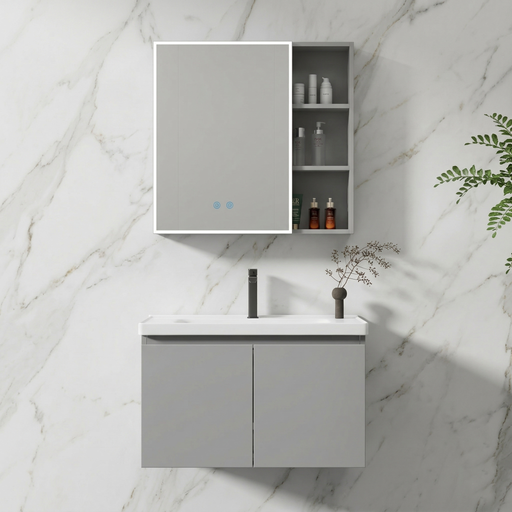 (Grey) features a minimalist wall-mounted design with smooth edges, intelligent lighting, and premium craftsmanship. The mirror cabinet and main ca...