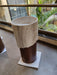 Beautifully detailed with a sculpted stone texture on top and a natural wood grain finish at the base, bringing earthy sophistication to your space.