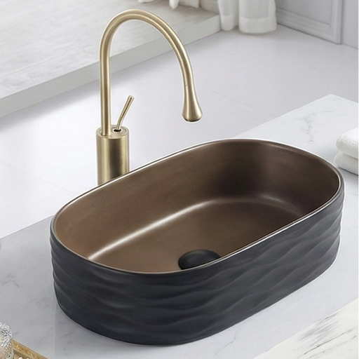 Premium Designer Ceramic Table Top Wash Basin, Dual Color Matt (20 x 12 x 6 In) ZXTT/748