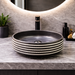 Luxury Round Ceramic Counter Top Wash Basin | 16x16x6 inch | Black With White striped