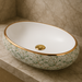 Premium Ceramic Wash Basin (Rose Gold Rim & Artistic Pattern 24 x 16 x 6 In - AB001)