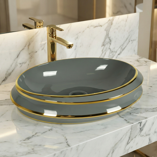 View full detailsLuxury Grey & Gold Countertop Wash Basin | Modern Designer Table Top Basin (24" × 16" × 6" IN)