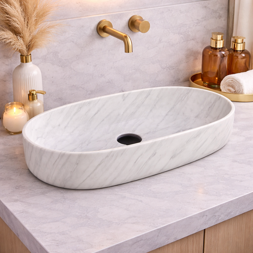 Bring timeless elegance to your bathroom with the Glossy Marble Oval Countertop Wash Basin. Designed with smooth curves and a luxurious marble fini...
