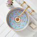 Designer Round Ceramic Wash Basin (Glossy Blue with Moroccan Art Design 16 x 16 x 5 In- AB604)