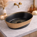 Luxury Oval Table Top Wash Basin – Matt Black with Rose Gold Pattern | Premium Designer Basin (20″ × 13″ × 6″ IN)