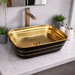The NCTT 937 Designer Table Top Wash Basin blends bold geometry with rich metallic elegance. Featuring a rectangular silhouette with softly rounded corners, this basin stands out with its striking gold-toned interior contrasted by a matte black exterior.