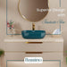 • 𝐄𝐲𝐞-𝐂𝐚𝐭𝐜𝐡𝐢𝐧𝐠 𝐓𝐞𝐚𝐥 𝐁𝐥𝐮𝐞 𝐅𝐢𝐧𝐢𝐬𝐡: The BASSINO tabletop basin features a luxurious peacock blue glazed finish, offering a bold statement piece that elevates the style of any modern bathroom, vanity, or powder room setting.