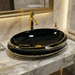Premium Designer Ceramic Table Top Wash Basin, Black-Gold Glossy (23.5 x 16 x 5.5 In) ZXTT/738