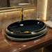Create a bold luxury statement in your bathroom with this premium designer ceramic table top wash basin. Crafted from high-quality ceramic, this basin delivers excellent durability, long-lasting shine, and a refined designer appeal. The elegant Black with Gold glossy finish makes it a standout choice for modern and premium bathroom interiors.