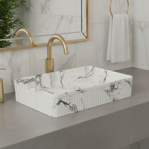 Bassino fluted Matte Marble Table Top Wash Basin 20 × 13.5 × 5 Inches | Luxury Imported Wash Basin