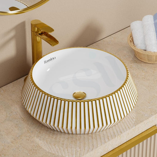 View full detailsPremium White Gold Ceramic Table Top Basin (16x16x5.5 In) BTT-11428-IN