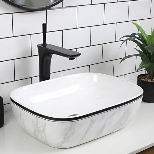 Timeless elegance meets modern craftsmanship in the BTT-1466 Designer Table Top Basin. With its luxurious marble-inspired finish in black and white...