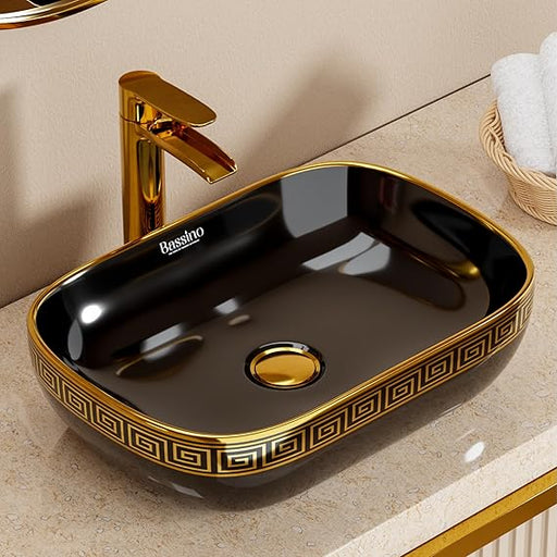 Brand: BASSINO Color: White-Gold Features: Product Size - (455 x 325 x 135 mm) Color - White Gold Our Bathroom Basin Sink Is Best Suitable For Liv...