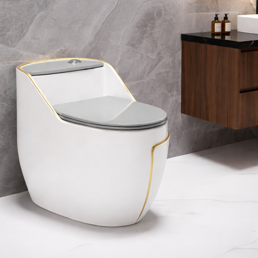 Luxury Siphonic One-Piece Western Toilet | Designer Floor Mounted WC with Gold Line | Approx. 26 × 17 × 23 Inches