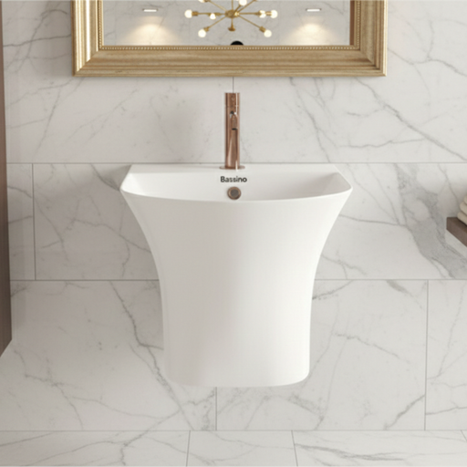 Upgrade your bathroom with the Bassino Berlin Wall Hung Wash Basin, a perfect blend of modern design and practical elegance. Designed with a smooth...