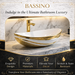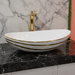 Enhance your bathroom with timeless elegance using this Luxury Gold Detailing Countertop Wash Basin by Bassino Impex. Designed with a sleek boat-shaped profile, this premium basin features a glossy white ceramic body accented with refined gold detailing, making it a perfect fit for modern and luxury bathroom interiors.