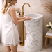 NCASB 2048 Artificial Stone Pedestal Basin is a striking fusion of architectural form and artistic craftsmanship. Designed as a floor-mounted pedestal basin, it features a dramatic layered ripple texture with a marble-effect finish, creating depth, motion, and visual intrigue from every angle.