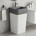 Add a touch of luxury and sophistication to your space with this stunning pedestal basin. Featuring a striking combination of glossy gray top and white marble texture base, enhanced by a subtle gold accent line, this basin brings elegance and modern appeal to any bathroom or utility area.