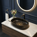The deep matte texture contrasts beautifully with the shimmering gold detailing, making it an ideal choice for modern, luxury, and designer bathroom interiors.