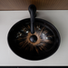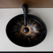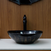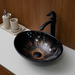 Make a bold artistic statement with the Designer Table Top Basin BTT-459, where craftsmanship meets creativity. Inspired by natural patterns and cosmic energy, this oval-shaped basin features a striking black-glazed body with a sunburst-like inner design in earthy bronze tones.