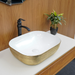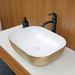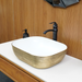 This elegant rectangular basin features a minimalist white gloss surface with delicate golden edging, offering a clean yet luxurious touch to any contemporary space.