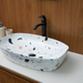 Make a bold artistic statement with the BTT-1252-IN Designer Table Top Basin. With its spacious 24 x 15 x 6 inch size and trendy terrazzo-inspired print, this piece combines playful character with elegant utility. The smooth oval-rectangle hybrid silhouette provides both form and function for modern vanities.