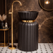 Elevate your bathroom with the Luxury Pedestal Basin, featuring a rich matte black finish accented with a refined gold detailing band. Its bold, fluted pedestal design combines classic elegance with modern sophistication.