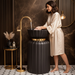 Luxury Black Pedestal Wash Basin with Gold Accent | Designer Freestanding Basin 17.5″ × 17.5″ × 34.5″ In