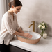Elevate your bathroom décor with the Luxury Oval Table Top Wash Basin, designed to bring elegance and sophistication to modern interiors. Finished in a glossy white surface with intricate rose gold pattern detailing, this basin creates a stunning visual contrast that instantly becomes the centerpiece of your vanity.