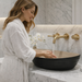 Enhance your bathroom with this premium designer ceramic table top wash basin, thoughtfully crafted for modern elegance and daily durability. Made from high-quality ceramic, this basin features a stylish dual color matt finish that adds depth and sophistication to contemporary bathroom interiors.